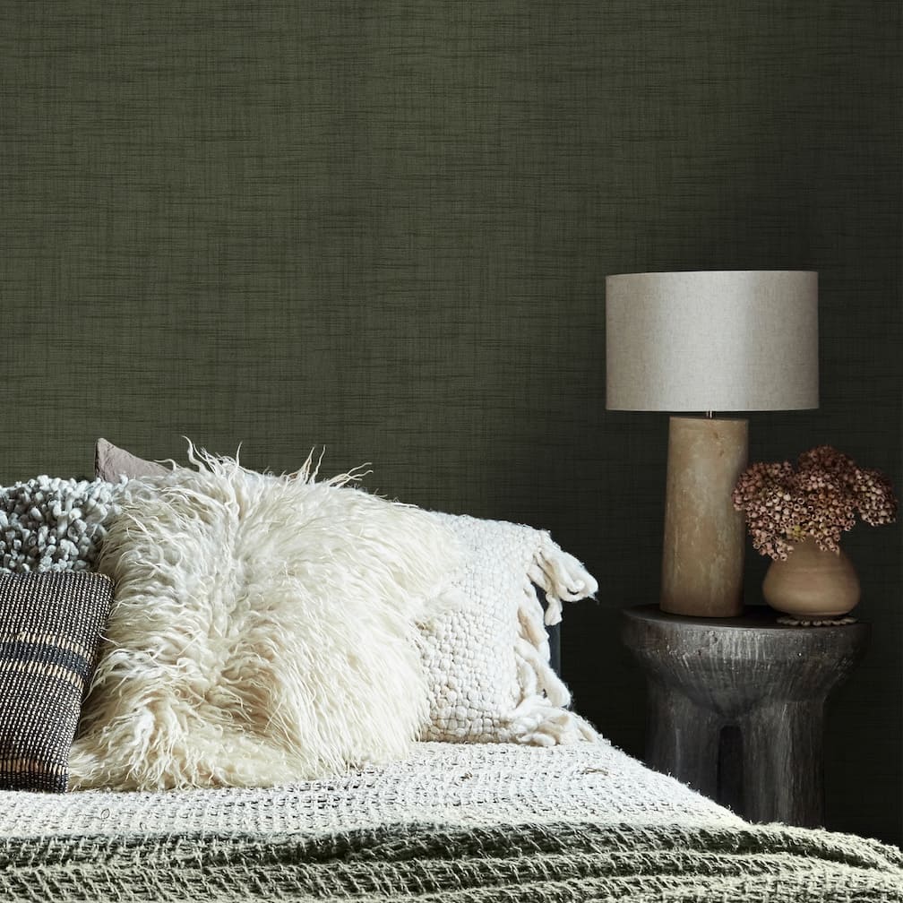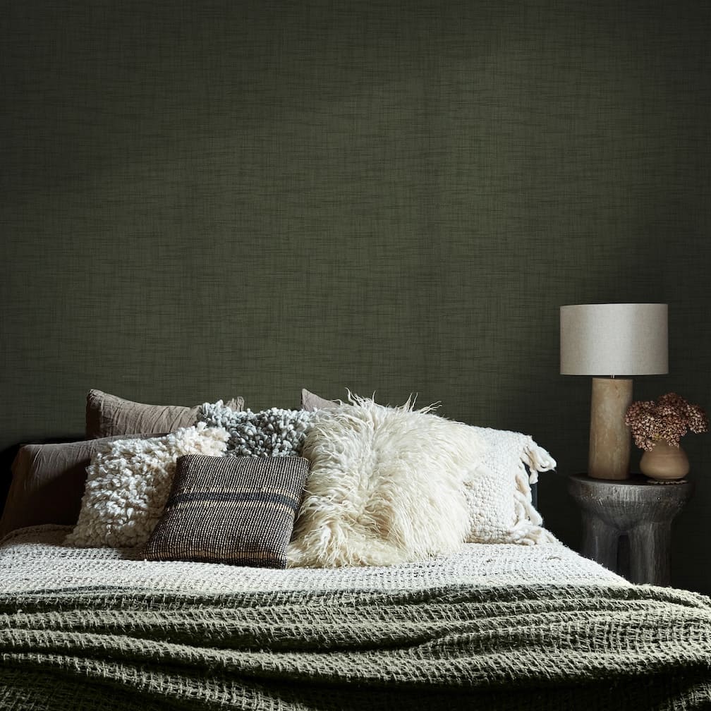Weathered Linen Garden wallpaper mimics the look of well-worn linen, featuring a textured surface that adds depth and character. Its forest green hue evokes a sense of sophistication and grounded elegance, while the weathered appearance lends an organic, natural feel. Perfect for creating a cosy, inviting atmosphere, to compliment both traditional and modern interiors.