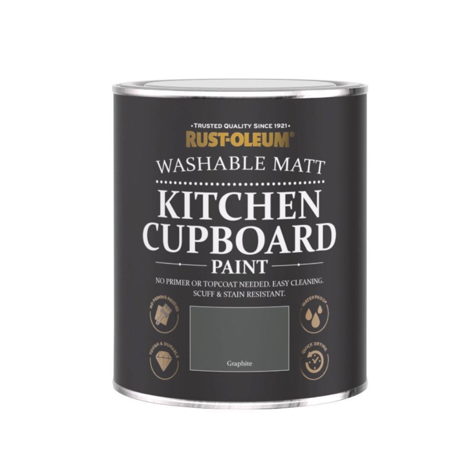 Rust-Oleum Kitchen Cupboard Paint Graphite 750ml. Add a dash of sophistication to your kitchen with Rust-Oleum Kitchen Cupboard Paint, for a soft matt finish that's as stylish as it is durable.