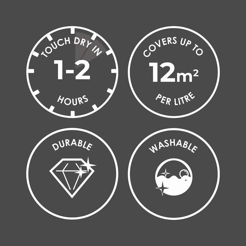 Superfresco Easy Up All Night Multi-Surface Matt Emulsion Paint 2.5L is a luxurious deep charcoal black with subtle chalky undertones, creating a bold yet sophisticated statement finish. Its rich, graphite-like hue adds depth and elegance to interiors, bringing a contemporary, stylish feel to living rooms, bedrooms, kitchens, or feature walls. This versatile dark grey pairs beautifully with lighter neutrals, metallic accents, and natural wood for a refined and balanced look.