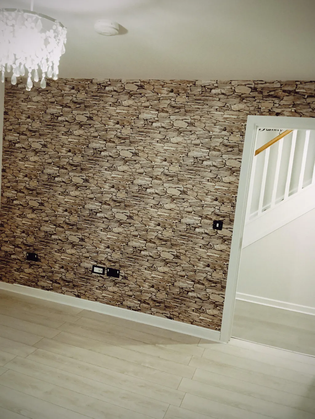 This brick effect neutral wallpaper can really transform a space, giving it character and warmth. It's like bringing a touch of the rustic outdoors inside.