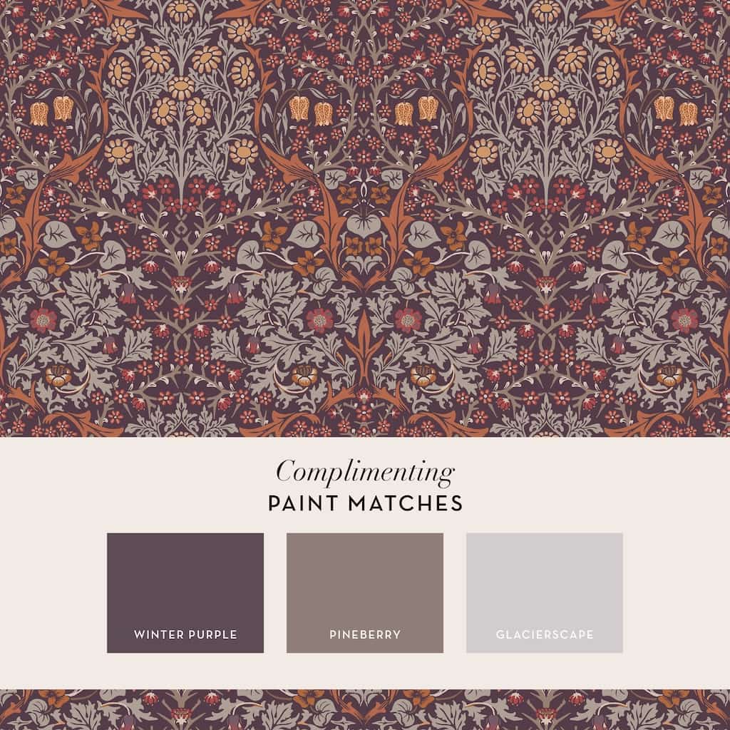 Pair this William Morris wallpaper with expertly matched William Morris emulsion or eggshell paint to create a soft yet distinctive finish. Recommended shades include Pineberry, Winter Purple, and Icelandic Journal—ideal for a beautifully cohesive and curated decor.