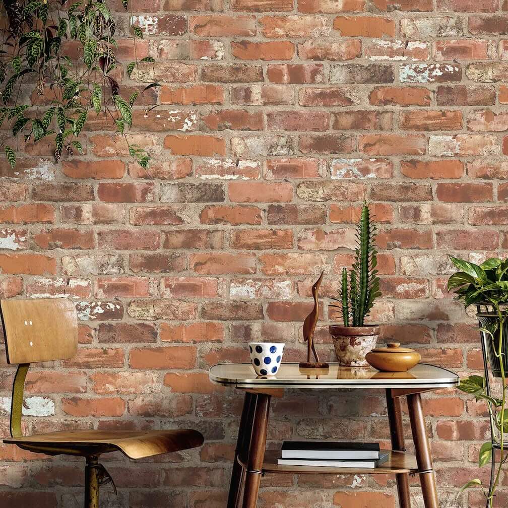 Inspired by Manchester’s industrial heritage, Castlefield Brick Clay Wallpaper by Woodchip & Magnolia brings the authentic look of timeworn brick into contemporary interiors. Deep terracotta, rich sienna, and warm russet tones blended with pale grey and aged teal capture the textured, weathered charm of historic mills and Roman ruins. Each brick features subtle imperfections and distressed detailing, creating the illusion of a real exposed brick wall, perfect for loft-style apartments, urban interiors, or modern rustic spaces.