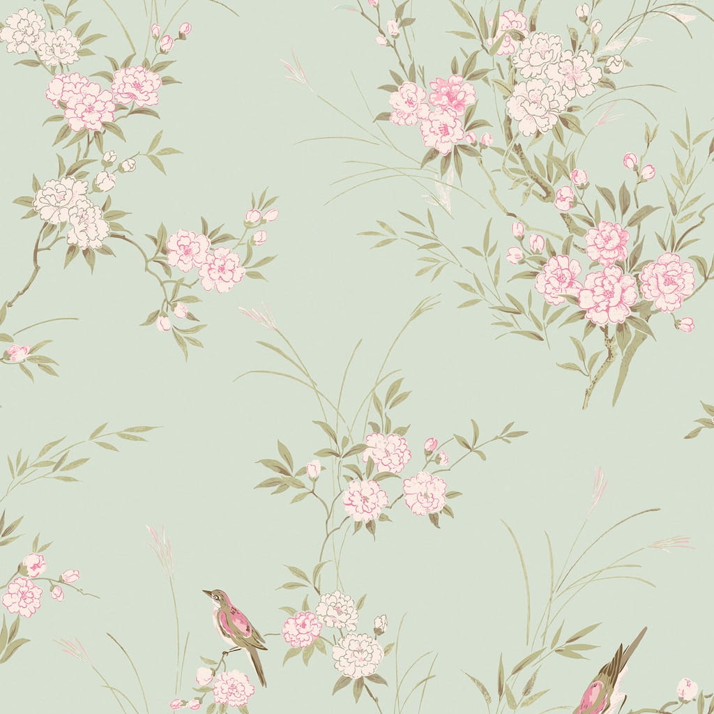 Shabby Chic | Ashwell Bird Chinoiserie Green Wallpaper