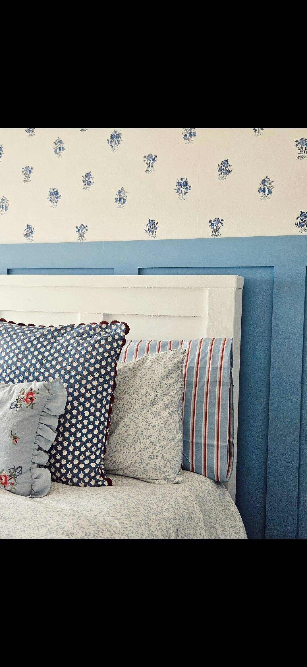 I love how our main bedroom turned out with this Whimsical wallpaper. The pattern is simple but effective & such a fun room to wake up in