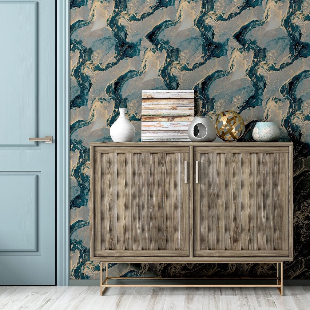 Arthouse Abstract Marble Teal/Gold Wallpaper