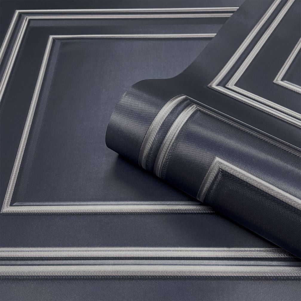 Belgravia Amara Panel Navy & Silver Wallpaper features a sophisticated embossed panel design in deep navy with subtle silver highlights. The textured finish adds depth and elegance, making it perfect for feature walls, bedrooms, living rooms, or hallways. Its rich navy hue paired with shimmering silver creates a refined look that complements both modern and classic interiors.