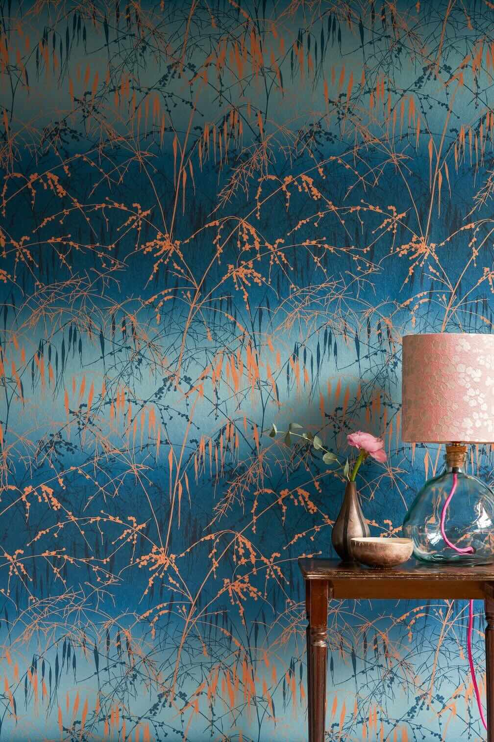 Clarissa Hulse Meadow Grass French Navy & Copper Wallpaper