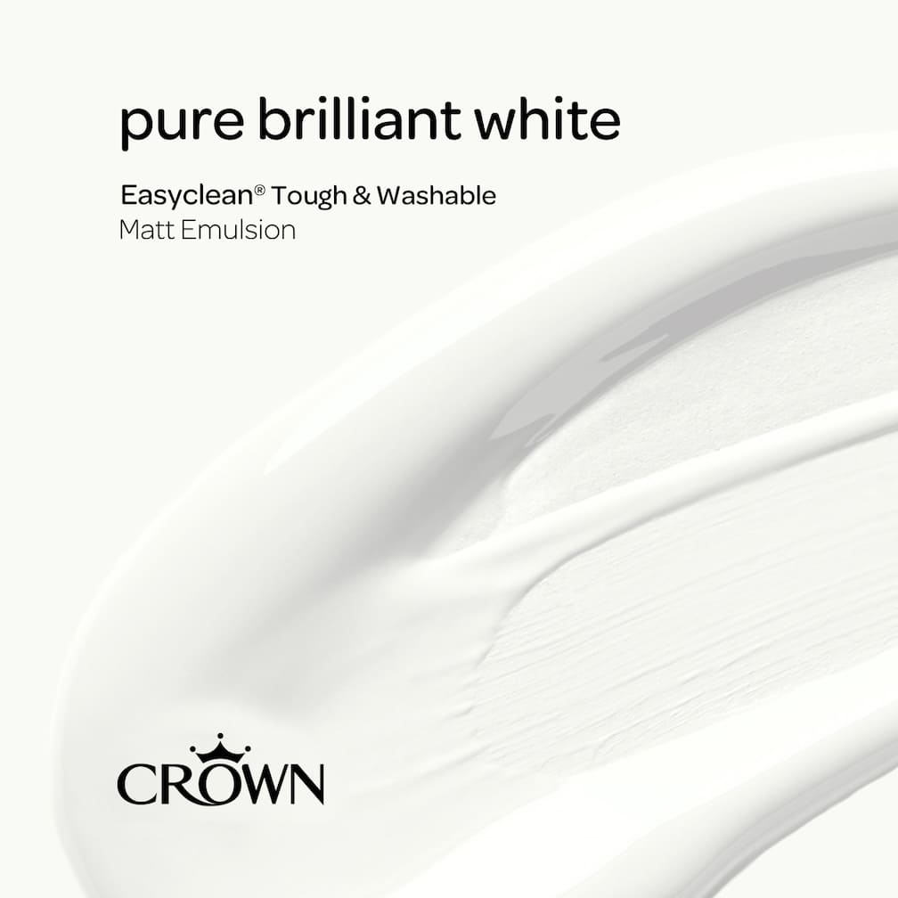 2.5L Crown easyclean Matt Emulsion in Pure Brilliant White is a clean, bright white that adds light, freshness, and a timeless finish to any space. Its crisp neutral tone enhances natural light and complements both bold accents and minimalist décor.