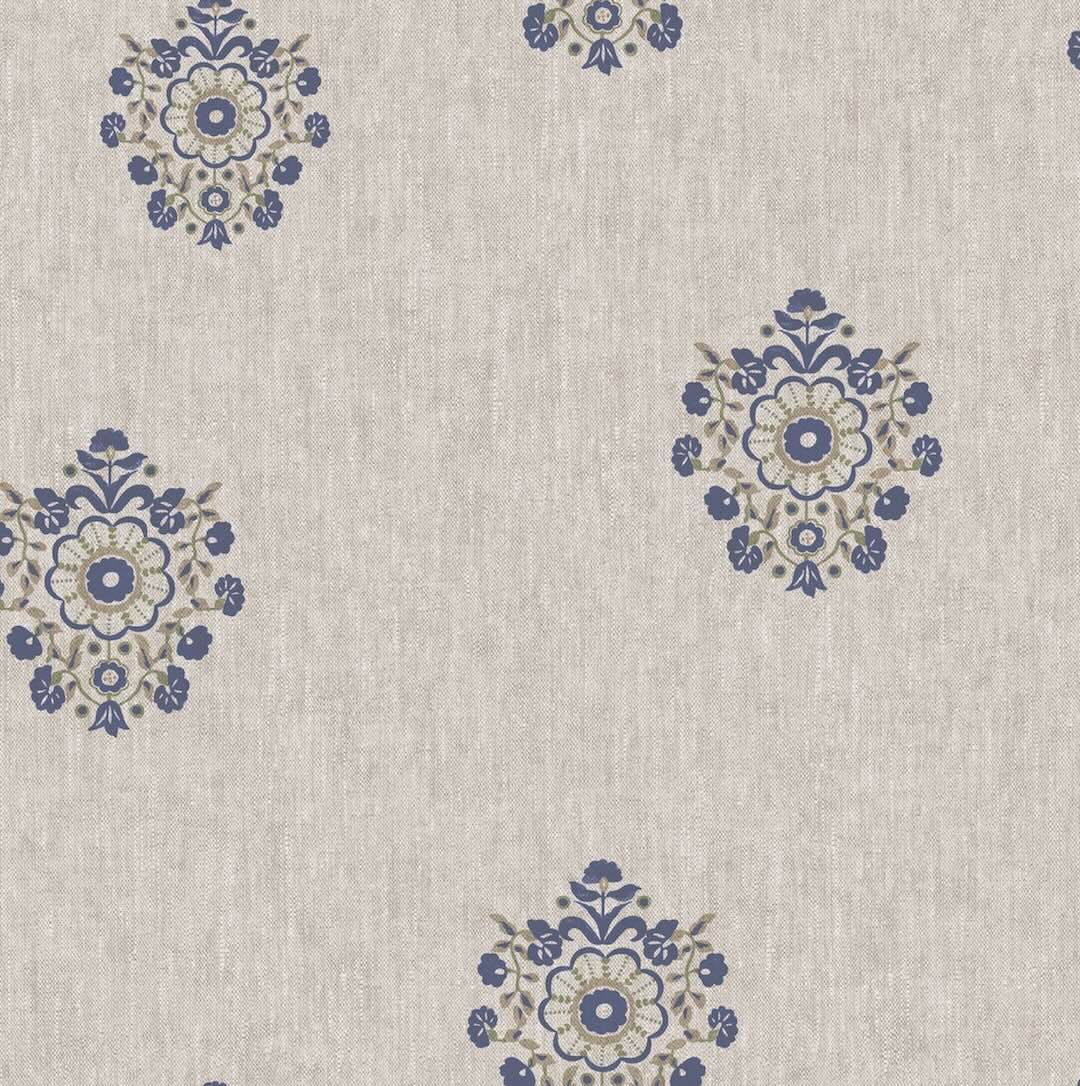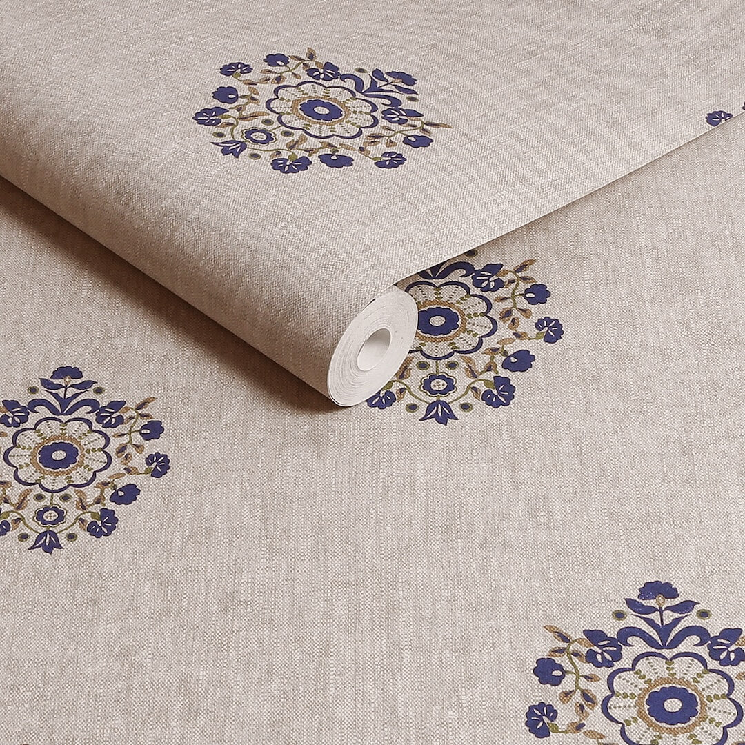 Joules Grove Motif Print Linen & Blue Wallpaper