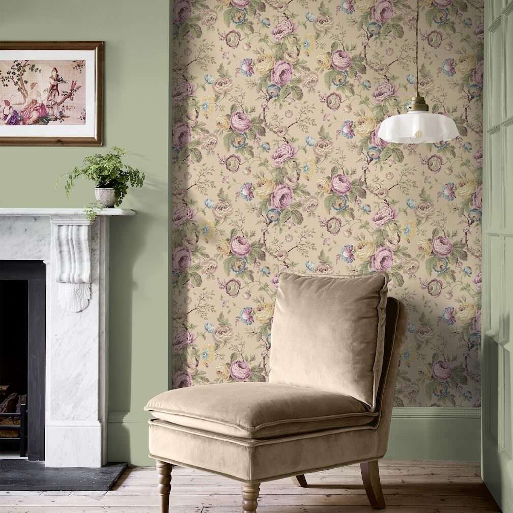 Laura Ashley Uffington Roses Plaster Pink Wallpaper
