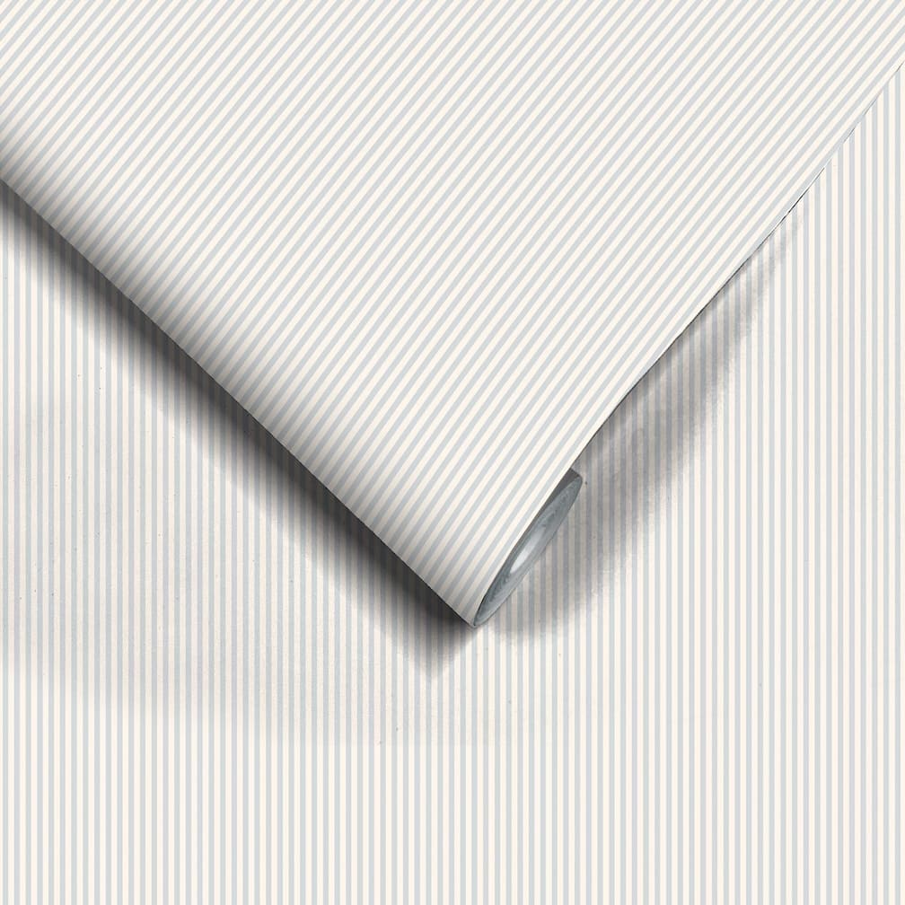 Earn your stripes with Woodchip & Magnolia Matchstick Cornflower Blue Wallpaper—a classic stripe wallpaper reimagined with crisp, modern sensibility. Slender 3mm-wide vertical lines in alternating soft blue and stone grey repeat gracefully across a creamy off-white base, creating subtle depth and texture without overwhelming the space. The delicate contrast and precise geometry give the pattern a timeless elegance, perfect for both traditional and contemporary interiors.