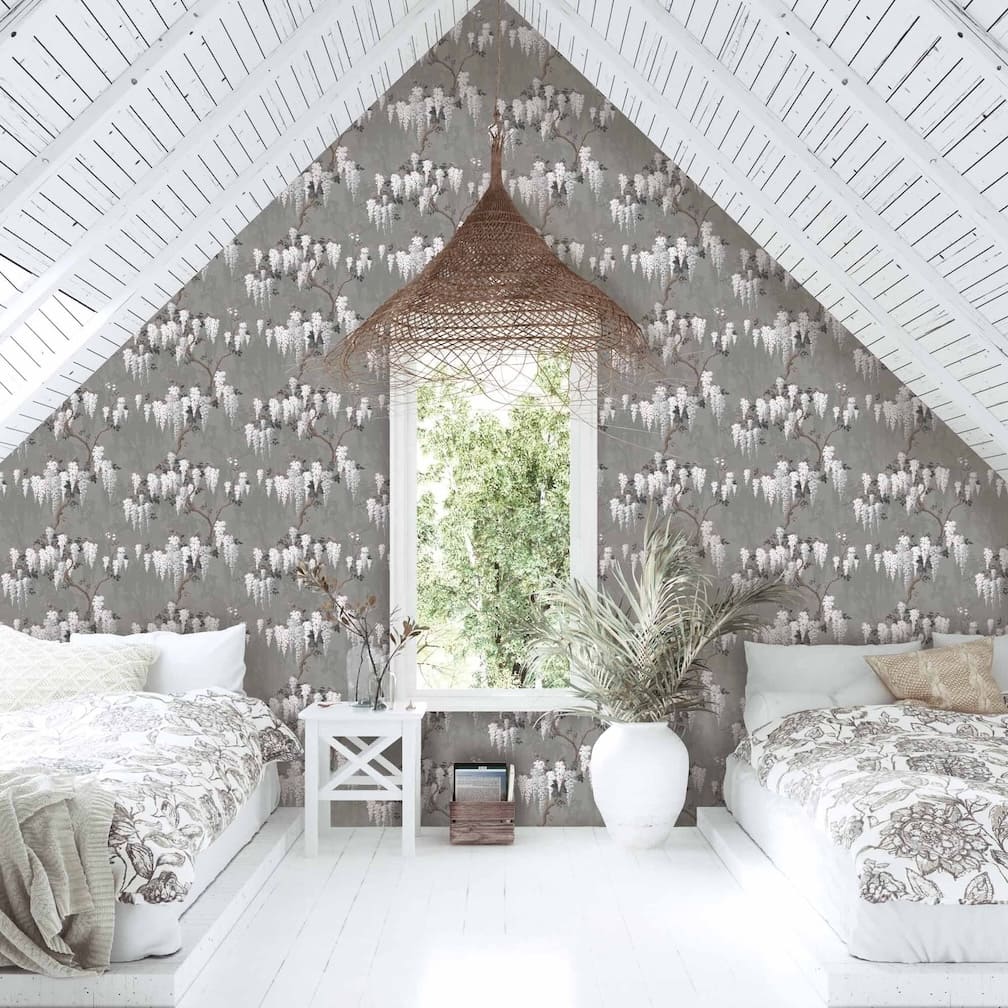 Woodchip & Magnolia Wisteria in Latte/Slate Grey Wallpaper